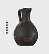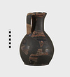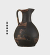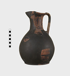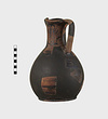 | Description: | Mended from many fragments, about three-fourths plaster. Profile certain. Sacklike body, sagging shoulder, greatest diameter very low. Broad base, low ring foot. Neck flares out to trefoil mouth. Handle, rim to shoulder. Beginning of reserved panel at mid-neck preserved. Handle, herringbone; above and below, bars. Pinkish-buff clay. Black glaze much effaced. Signs of burning. | |