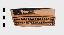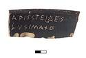 | Description: | Rim of black figure calyx krater. Ivy band with purple central stem, outside. Inscribed inside: Αρισστειδες Λυσιμαχο | |