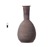 | Description: | Scattered pieces missing. Onion-shaped, large. Deep pear-shaped body; tall neck; flat rim. Heavy gray fabric; shallow grooves on body; matte black glaze on neck. Fragments of several unguentaria of similar shape but of more common thin light red-brown clay stored with pottery. | |