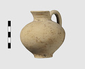 | Description: | Jug with Cutaway Neck. Intact. Surface damaged; rim inside, outside and handle painted once. Decoration faded, probaby the vase was covered over all with paint(?). | |
