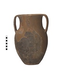 | Description: | More than half preserved, including the full profile, and all of the bottom; in part filled out in plaster. Micaceous ware household amphora with flattened bottom, wide mouth, flaring rim and band handles from rim. Handmade; the fabric red wtih gray core; the outside blackened from use. Unglazed. | |