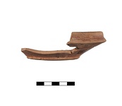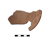Description:   Two joining fragments give full profile of shallow Samian bowl. Low ring foot, keeled rim. Edge of stamp on line of break along center of floor.