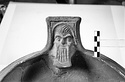 | Description: | Mended from many pieces and in part restored. High type brazier with bearded head lug. Coarse red clay. | |