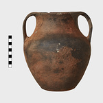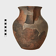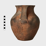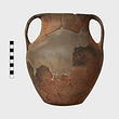 | Description: | Mended from several pieces. Pieces missing from neck and body, restored in plaster. Rim flat above; wide neck opening toward shoulder; irregularly flattened bottom; broad band handles from lip. Dark red dirty clay, presenting brown surface and occasionally dark gray core. Burned. | |