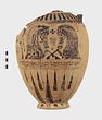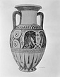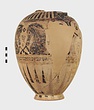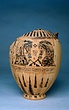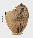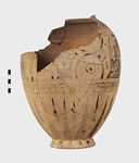 Description:   Preserved only to spring of neck; handles and large fragments of wall missing, including the upper part of the shoulder panel on one side. Shape, type II a (R-M).