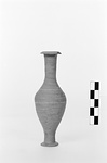 | Description: | Rim and foot chipped, otherwise intact. White bands below shoulder and on neck. Clay reddish-gray on surface. | |