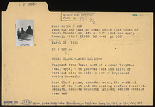 | Context: | Cutting east of Great Drain just south of South Foundation, 4th. c. B.C. (but one early Roman). With P 22928 (ΜΣ 444). | |
