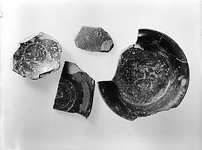 | Description: | Samian B plate fragment. Very low moulded ring base. In the center of the inside, a circular hatched band, within which is an oblong stamp: <graphic> | |