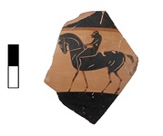 | Description: | Broken all around. From side of Little Master cup. Horse and rider, left. No clear trace of added color. | |