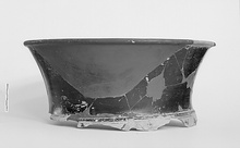 Description:   Upper part of a bell krater of the Falaief-type; mended from many pieces. Much of the high flaring rim preserved, and of the interior collar, pierced next to the rim with a ring of small holes. Plain rolled lip for collar and rim. Moulded ring at junction of rim and shoulder.