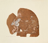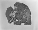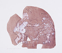 Badly damaged surface shows parts of two grotesque figures, drawn in outline. The flesh here is apparently rendered in pink with white underpainting: not in pink directly on the clay ground, as on the other examples of this class (P 23856, P 23900, P 23907).