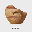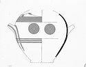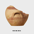 | Description: | Preserved from lower body into shoulder with both handles; gaps filled out in plaster. Light ground; narrow-wide-narrow bands at base of shoulder, three narrow on lower body. Preserved on shoulder: part of a set of concentric circles (compass drawn) and a wavy line as divider; belly: two sets of concentric circles on one side, the other may have been undecorated. Soft pinkish-buff clay, buff surface; brown-red to red glaze, largely perished. Submycenaean. | |