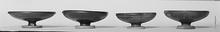 | Description: | Chip missing from rim. Similar to P 24606 (ΣΑ 2816), but smaller. The rolled lip set off by a scraped line; the edge of the disk foot lightly rounded. Reserved: edge of foot; resting surface; space at top of foot cone. | |