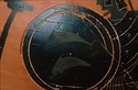 Plastic ring at join of neck, line above panel of side B, pair of lines below pictures all around the vase, another pair above the rays, are in diluted clay having a color brown instead of the usual red.