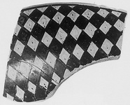 | Description: | Mended from two pieces. Rim fragment. Inside offset rim. Outside, lozenges, inside each diamond another diamond and a dot. Inside, two reserved triangles vertically and a dotted rosette. Good glaze. Cf. the cups of the Marley Painter and the Lid Painter. | |