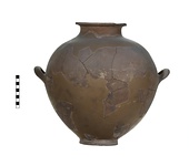 | Description: | Wall and rim fragments missing; restored. Large ovoid micaceous ware hydria; ring foot; flat-topped rim. Heavily incised around the rim: <graphic> Cf. Agora XII, no. 1594. | |