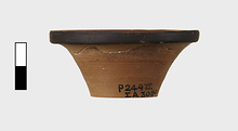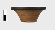 | Description: | Much of rim missing. No foot. Flat bottom. Red inside lip. | |