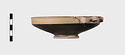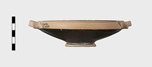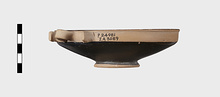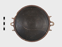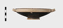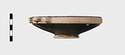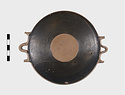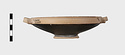 Description:   Complete. Low flaring foot; narrow flat-topped rim. Reserved: handle zone, handles and underside of foot. Rim painted red on top.