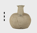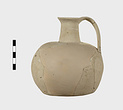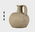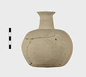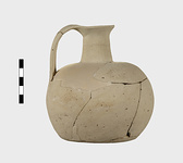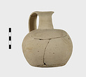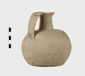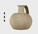 | Description: | Much of body missing, but profile complete; restored. Round mouth, narrow neck, squat rounded body. Flat bottom. Handmade, the outside finished by paring. Pale buff clay. Argive Monochrome. | |