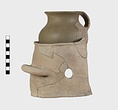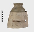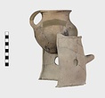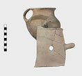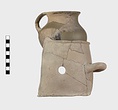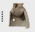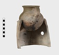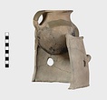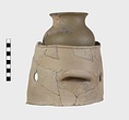 | Description: | About half preserved; restored. One handle. Rounded bottom. Outside very blackened by fire. Fits nicely on P 25008 (ΣΑ 3130), pot stand. | |