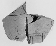 | Description: | [Original shape identification: white ground kylix] Two joining fragments give a little of stem and floor. Part of the body of a horse(?) right, and of someone behind him. Very delicat dilute glaze drawing. For composition cf. Graef and Langlotz, Akrop. Vasen , II, pl. 23:363b, and pl. 24:336. | |
