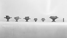 | Description: | Mended from two pieces; most of one side of rim and side gone. Flat, spreading foot; high stand upon which sits a bowl with projecting ridge at the middle of the sides, pierced twice on either side, by the handle. The handles are looped and horizontal. The rim of the pot flares. Buff clay. Unglazed. | |