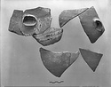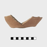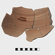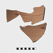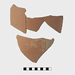 Traces of white slip and dull brown banded decoration. Ruddy micaceous clay. Other fragments from body.