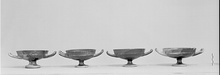 | Description: | Mended from many pieces; fragments missing, including half of one handle. Similar to P 25521 (ΠΘ 3585) but with narrower resting surface and no incised line on foot. Glaze somewhat greenish. | |