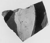 | Description: | Fragment from lekanis lid. At right, drapery; then the mid-part of a standing figure, white, with drapery, once painted in an added color, behind: Eros. | |