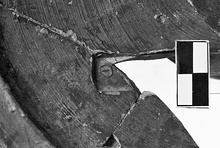 Description:   Two joining fragments preserve some of rim and body. Out-turned rim.