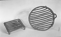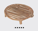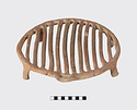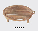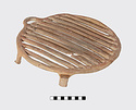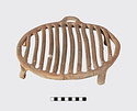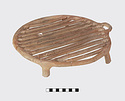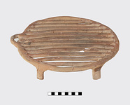 | Description: | Broken but complete. Circular grill on four legs; small handle. Red micaceous clay; never used? | |