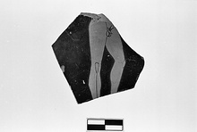 | Description: | Broken all around. Part of maeander medallion border preserved inside. Outside, lower body of a naked youth, standing, turning to right. Relief contour. Good glaze. ADDENDA Cf. Letter from JDB, 13 Oct. 1958. | |