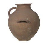 | Description: | Household Hydria. Lip chipped. Vertical handle broken but preserved. Very rotund shape. Ring foot, flat projecting rim. Fine slip much worn. Reddish-brown micaceous clay. | |