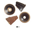 | Description: | A fragment so coarse as to resemble a tile, but with wheel marks at right angles to the letters. Pink clay with white bits; fired buff on the outside; on the inside covered with a heavy, dull dark red glaze. | |