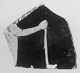 | Description: | Broken all around. From small plate? Figure to right, arm outstretched holding stick(?) vertically downward. Circular black concentric rings on reserved surface, on reverse. ADDENDA (Sept. 2020), according to Agora XXX, Stemless Cup fragment. | |