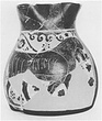 | Description: | Upper part of body and part of trefoil mouth preserved in eight joining fragments. Glazed on exterior and glazed band on interior of mouth. In reserved panel below mouth lion to left incised and with added purple; filling ornament. Black glaze. Attic. | |