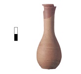 | Description: | Intact except for large piece missing from lip. Flat bottom, tall narrow neck, bulbous body. Glaze around mouth, otherwise unglazed. Thin brown glaze. Reddish clay, lighter at surface. Cf. P 10341, late 1st. c. B.C. to 1st. c. A.D. | |
