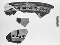 | Description: | About one-fourth of rim preserved, mended from six pieces. Flaring rim with rounded lip, reserved band at lip and below lip inside. Rim pattern is stylized laurel between reserved bands, offset from body. Lower band has miltos. Groove with miltos just above laurel pattern. Red figure scene shows three men; at right a draped figure facing left; in center, figure facing right, holding a staff or javelin upright; at left, a figure facing right. (ADDENDA Villa Giulia Pt., J. Oakley, 18/5/1984; same vase as P 30028 and perhaps P 30040.) c) Single fragment broken all around. At right a figure clad in chiton and himation stands to right. In center, a nude male faces front. He carries a shield on his left arm, and a spear. At left, traces of another draped figure. (ADDENDA Villa Giulia Pt., J. Oakley, 18/5/1984; same vase as P 30009 and perhaps P 30040.) Black glaze inside and out. Pink clay. | |