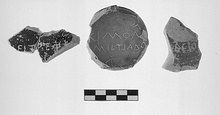 | Description: | Two pieces broken all around. Inscribed diagonally on large closed vessel. Pink clay. | |