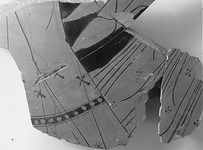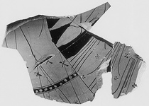 | Description: | From the wall of a krater, mended from five fragments. Lustrous black glaze inside. Represented are two female figures running rapidly in opposite directions; only a part of their skirts and flying drapery preserved. Relief contours; the drapery lines and the embroidered and banded decoration done in relief lines, supplemented with a very little dilute glaze. | |