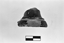 | Description: | Ca. one-half of foot. Scraped groove on resting surface and between mouldings of foot. Fairly high thin stem. Shiny brown glaze. | |