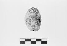 | Description: | Broken at neck and at back except where a small portion of back surface preserved. A high cap, or bushy hair, ends low on the forehead. The brows are thick and meet at the bridge of the nose. The nose although broken away was probably rather broad and flat. The cheekbones are high and pronounced. A thick curly beard covers the lower face up to the cheekbones and a moustache fills the space between the nose and the mouth, which seems to be open. The head was covered with metallic black glaze. The piece resembles the satyr rhyton in Williams, Hesperia 47 (1978), no. 69, pl. 103. It may be an Arab or other Easterner rather than a satyr. Probably 4th c. B.C. | |