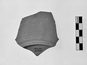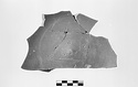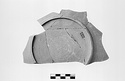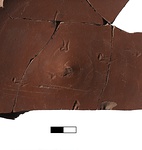 | Description: | Most of base and floor (mended from six fragments). Tiny foot, shallow curved floor. Four poorly impressed dolphin(?) stamps around center. Hard dull red ware, thin; red slip, smooth on interior. Phocean red slip ware. | |
