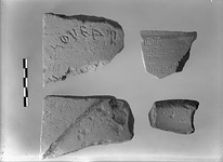| Description: | Fragment from a large open pot (krater?). Glazed black inside and decorated with a black band on the outside. Inscribed on the outside: <graphic> Pinkish buff clay. | |