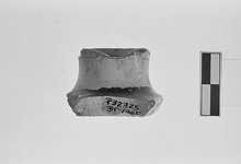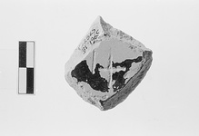 | Description: | Fragment of a fine ware base or lid handle preserving traces of black glaze. Reserved band around base/handle? Flat surface opposite base/handle carries two letters. The inscription reads: <graphic> Pale orange-brown fabric without visible inclusions. Cf. Hesperia 65 (1996), p. 233, n. 4. | |