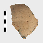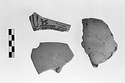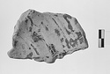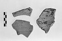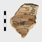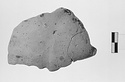 | Description: | Two joining fragments preserving portion of test piece, including two edges that meet at apex; part of draw hole preserved on lower fragment. Piece cut from upper body of medium size closed vessel (oinochoe?). Paint on interior and exterior irregularly applied, much worn, and with a tendency to flake where thickest. Paint fired black. There are enough traces of paint on exterior to indicate that much, if not all of exterior, was completely painted. Interior painted solidly, except perhaps for upper part of fragment. Substantial traces of paint on both edges and on draw hole edge. Clay body and surfaces where paint has peeled off fired between light brown and pink 7.5 YR 6/4-7/4. | |