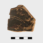 | Description: | Single fragment preserving portion of test piece, including one edge. Piece cut from lower body, including handle attachment, of skyphos rather than belly-handled amphora or hydria. Paint on interior, exterior and edge evenly fired black. Interior painted solidly; broad sweep of paint on exterior. Clay body and reserved surfaces evenly fired close to pink 7.5YR 7/4. | |