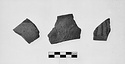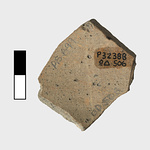 | Description: | Single fragment preserving small part of body of closed vessel, broken on all sides. Fragment bent out of shape and partially vitrified due to excessive heat. Interior reserved. Two horizontal bands on exterior, fired brown with a maroon-purple tinge. Clay body and surfaces fired close to the range of 10YR 7/1-7/2, 6/1-6/2 (gray, light gray, light brownish-gray). | |