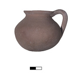 | Description: | Intact. Rounded bottom, steep shoulder, flaring rim. Rolled handle. Micaceous dark buff clay, burnished on bottom. No burning. Cf. Agora XII, no. 1937, early 5th BC. | |