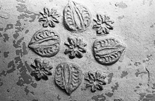 | Description: | The base and a small part of the rim preserved. Restored in plaster. Double curved profile, complete, with small horizontal rim. Ring foot. On the inside, at the center, deeply stamped palmettes and rosettes. Pinkish buff clay; glazed red to black. | |